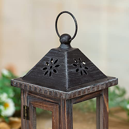 Romadedi Laterne Holz Holzlaternen für Kerzen – Windlicht Gartenwindlicht Hängend Kerzenständer Landhaus Deko Vintage Ornament Innen Außen Laternen Für Hochzeit und Weihnachten Tischdeko, Braun 28cm