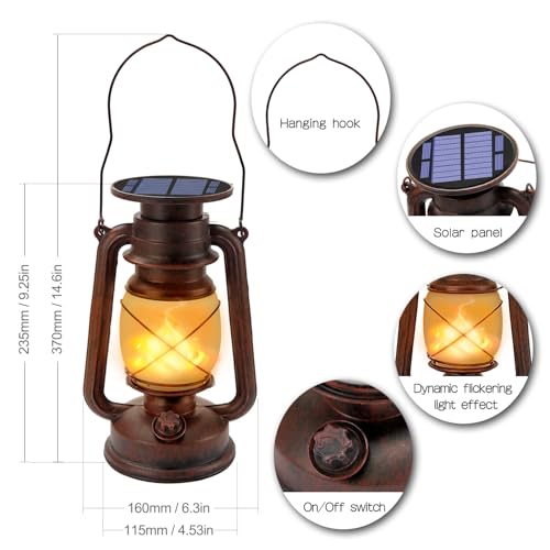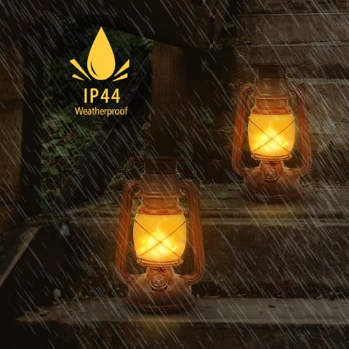Vintage Solar Laterne Warmweiß Ultra Helle Solarlaterne für außen Retro Design Led Laterne Outdoor, Wasserdichte Laterne mit Flammenoptik für Garten und Camping, laternen für draußen (2er Pack)