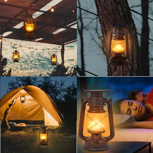 【Erhöhte Sicherheit】Erhöhte Sicherheit: Mit einem robusten Griff ausgestattet, sind diese Solarlaternen einfach zu tragen und können mühelos an Wänden oder in Bäumen aufgehängt werden. Sie sind ideal für den Einsatz im Garten oder beim Camping mit Kindern, da keine echte Flamme verwendet wird