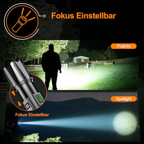【LCD-DISPLAY & WIEDERAUFLADBAR】Diese innovative led taschenlampe aufladbar verfügt über ein klares LCD-Display, das den genauen Batteriestand anzeigt – so wissen Sie immer genau, wie viel Energie noch vorhanden ist. Der vielseitige USB-C-Anschluss ermöglicht es Ihnen, die taschenlampe aufladbar schnell von jeder Standard-USB-Quelle aufzuladen. Im Notfall können Sie damit sogar Ihr Mobiltelefon aufladen. Verlängerter Laufzeitmodus (bis zu 40 Stunden) – ideal für spontane Campingabenteuer und Wochenendwanderungen in den Bergen.