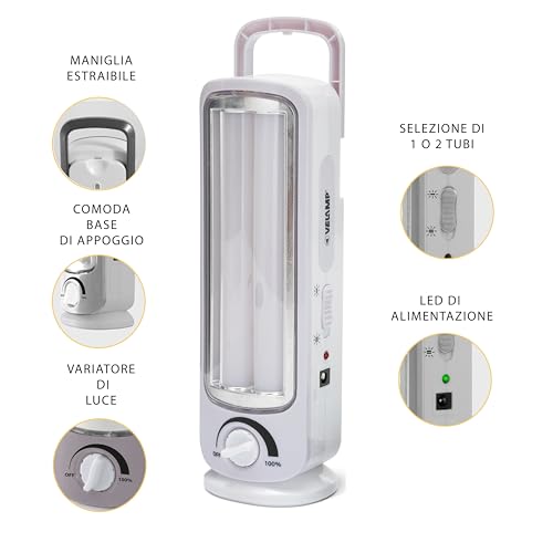 2 LED-Röhren mit Dimmer: Sie können die Beleuchtungsstärke für 1 oder 2 Röhren wählen. 1 Röhre: max. 150 Lumen 2 Röhrchen: max. 300 Lumen; diffuses und homogenes Licht, nicht aggressiv, aber gleichzeitig sehr hell (bis zu 8 W).