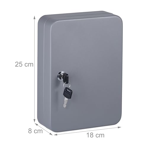 Relaxdays Schlüsselkasten, abschließbar, 48 Haken, mit Schlüsselanhängern, HxBxT: 25 x 18 x 8 cm, Schlüsselbox, grau