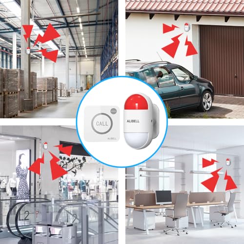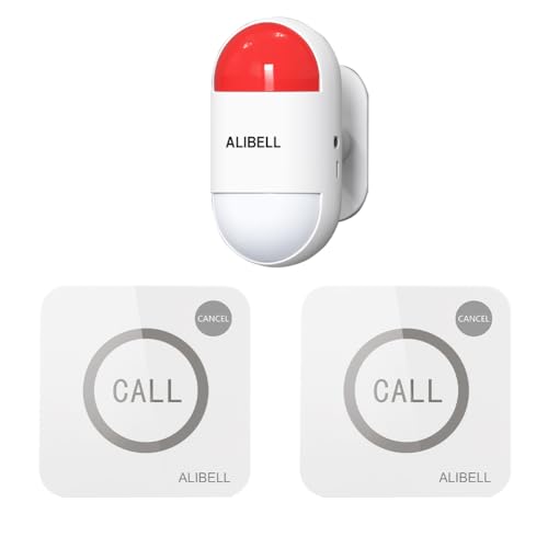 ALIBELL Persönlicher Alarm 120dB Sirene, Notfall Knopf Alarm Sicherheits System für Haus/Geschäft/Fabrik, 2 Notrufknopf + 1 Sirene(Batteriebetrieben&Plug-in Netzbetrieb)