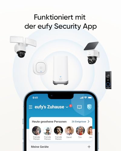 BEDIENUNG ÜBER APP: Eine App steuert alles. Verknüpft mit HomeBase und der eufy Security App. Erhalte einfach Benachrichtigungen und überprüfe den Batteriestatus.