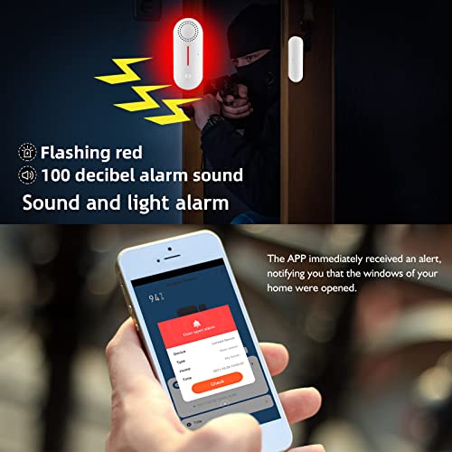 WLAN Türalarm Fensteralarm, WiFi Tür und Fenstersensor mit Sirene, App und Sprachsteuerung Alarm, Timing Scharf/Unscharf, Kompatibel mit Alexa Google Assistant für Home Security Sensor Alarm