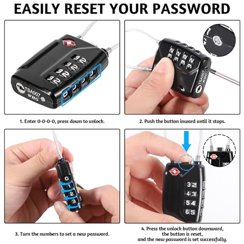 【Passwort zurücksetzen】TSA Gepäckschlösser ist einfach, das Passwort zu ändern. Geben Sie 0-0-0-0 ein und drücken Sie zum Entsperren die Taste nach unten. Drücken Sie den Knopf bis zum Anschlag nach innen. Drehen Sie die Zahlen und legen Sie ein neues Passwort fest. Drücken Sie die Entriegelungstaste nach unten, die Taste wird zurückgesetzt und das neue Passwort wurde erfolgreich festgelegt.