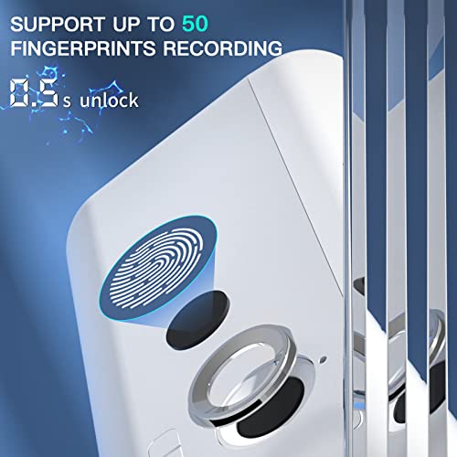 AICase Biometrische Aufbewahrungsbox für Fingerabdrücke,tragbar, für Bargeld,Schmuck,Sicherheitsschloss,multifunktional, Stiftemäppchen,Organizer,Schule,Geschenk für Erwachsene,Mädchen,Jungen Weiß