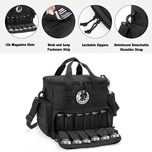 DSLEAF Waffentasche mit 3 Pistolentaschen, Waffentasche mit 12 Magazinfächern und zusätzlichen Taschen für Schießen und Jagen