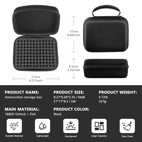 9-mm-Munitionsaufbewahrungsbox: Diese Munitionstasche besteht aus Oxford-Gewebe 1680D + EVA + Samt, das stoß- und sturzfest ist. schwammartiger Polsterung zur stabilen Aufbewahrung von Munition, stabiler Handgurt für den Transport.